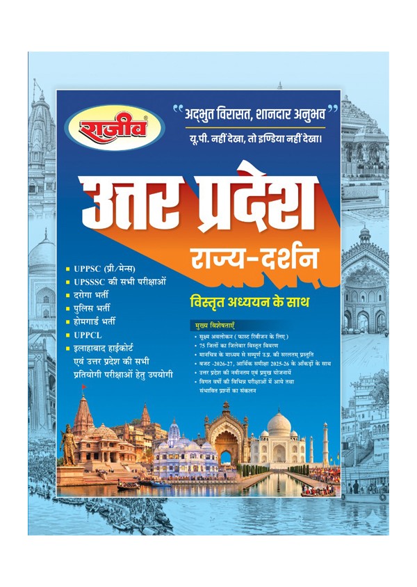 Kya aap Uttar Pradesh ki pratiyogi parikshao (competitive exams) ki taiyari kar rahe hain? Rajeev Uttar Pradesh Rajya-Darshan ek aisi kitab hai jo aapko UP ke har pahlu se rubaru karayegi. "Adbhut Virasat, Shaandaar Anubhav" ke mantra ke saath, ye book UPPSC aur UPSSSC ke naye pattern par aadharit hai.